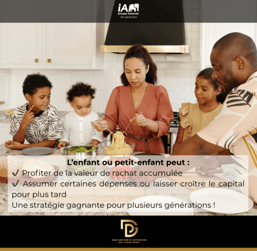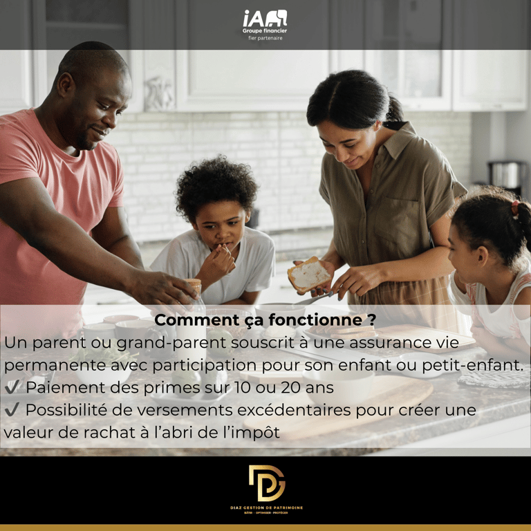Un parent ou un grand-parent souscrit une assurance vie permanente avec participation (comme iA PAR) ou tout autre produit comprenant une valeur de rachat.