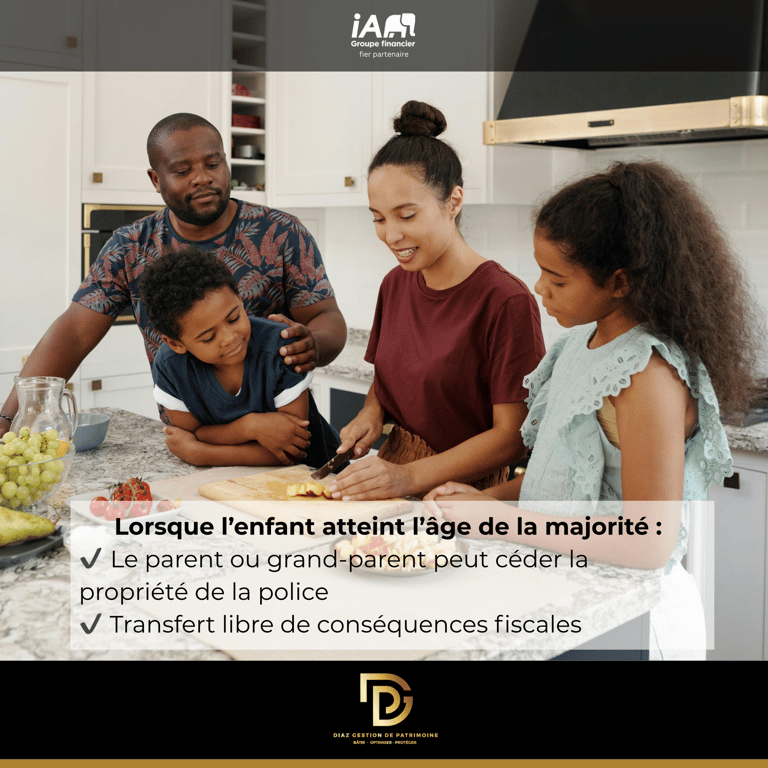 Une fois lâenfant majeur, la police peut ĂȘtre cĂ©dĂ©e Ă son nom, entiĂšrement libĂ©rĂ©e de paiement.